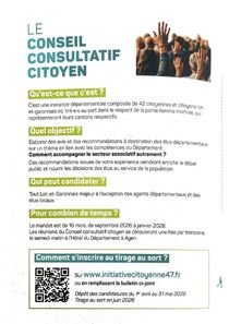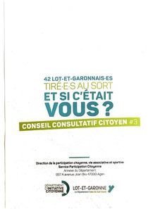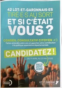 C'est une instance départementale composée de 42 citoyennes et citoyens lot-et-garonnais.es, tiré.e.s au sort dans le respect de la parité femme-homme, qui représenteront leurs cantons respectifs.